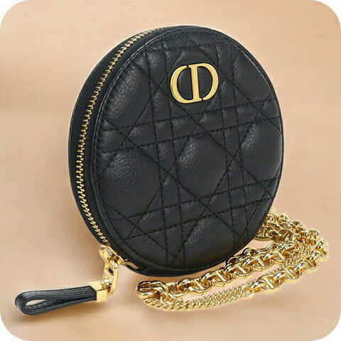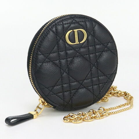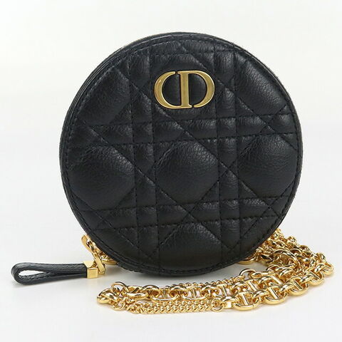 中古 ディオール ショルダー レディース ブランド Dior ディオール カロ ラウンド チェーンショルダーポーチ レザー S5092 UWHC ブラック バッグ