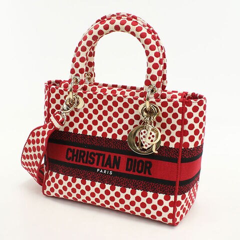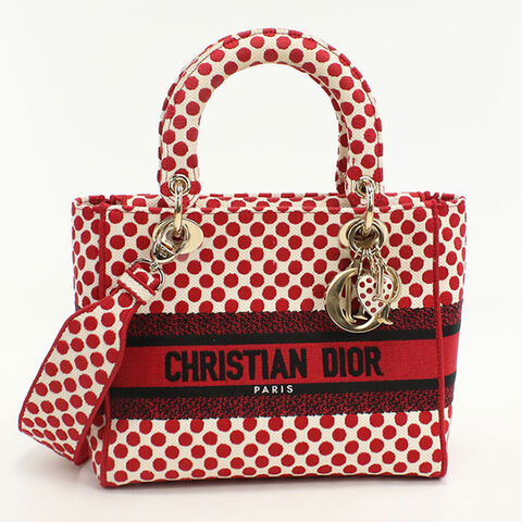 中古 ディオール ハンドバッグ レディース ブランド Dior レディ D-ライト バッグ ミディアム レッド バッグ