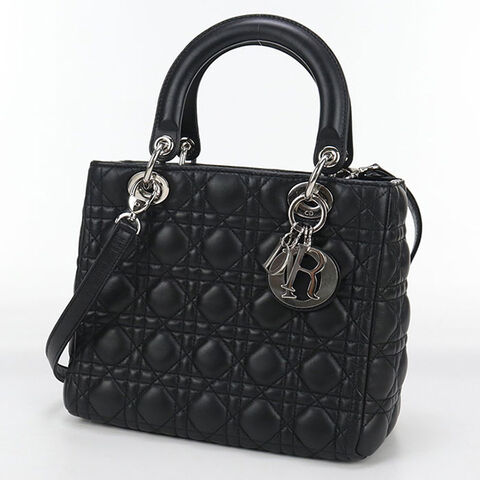 中古 ディオール ハンドバッグ レディース ブランド Dior レディディオール バッグ ミディアム ブラック バッグ