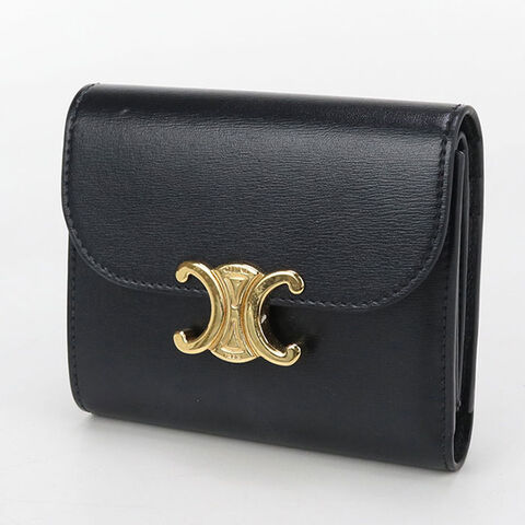 中古 セリーヌ 三折財布 レディース ブランド CELINE トリオンフ スモール フラップウォレット 10D783DPV.38NO ブラック 財布