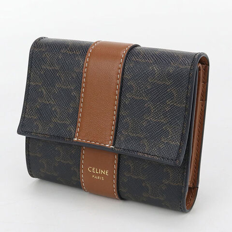 中古 セリーヌ 三折財布 レディース ブランド CELINE トリオンフキャンバス スモール トリフォールドウォレット 10D572BZ9 ブラウン 財布