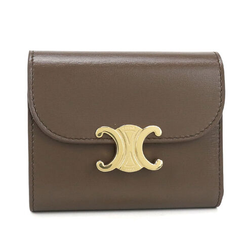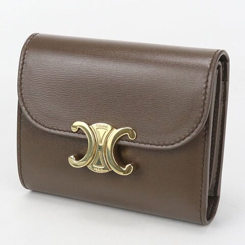 中古 セリーヌ 三つ折り財布 レディース ブランド CELINE トリオンフ スモール フラップウォレット 10D783DPV ブラウン 財布