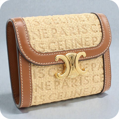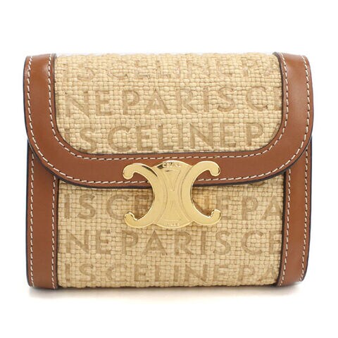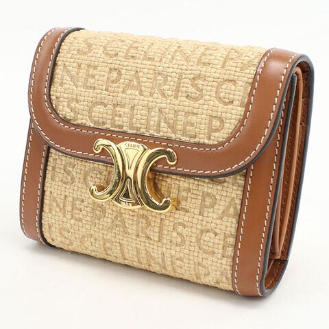 中古 セリーヌ 三つ折り財布 レディース ブランド CELINE トリオンフ スモール フラップ ウォレット レザー 10D78 ベージュ 財布