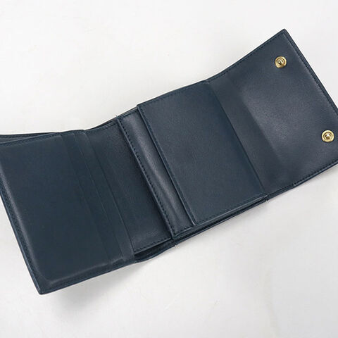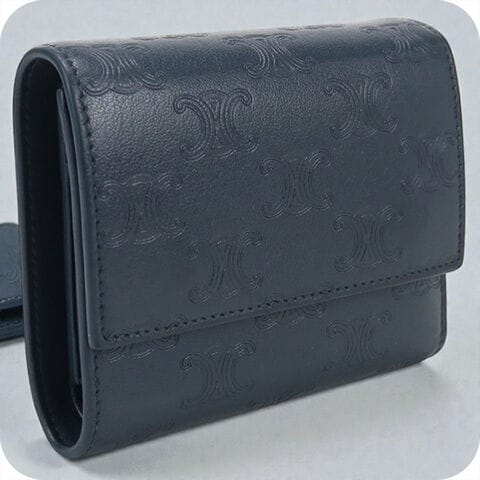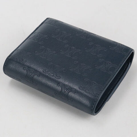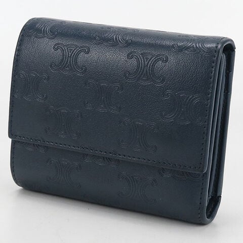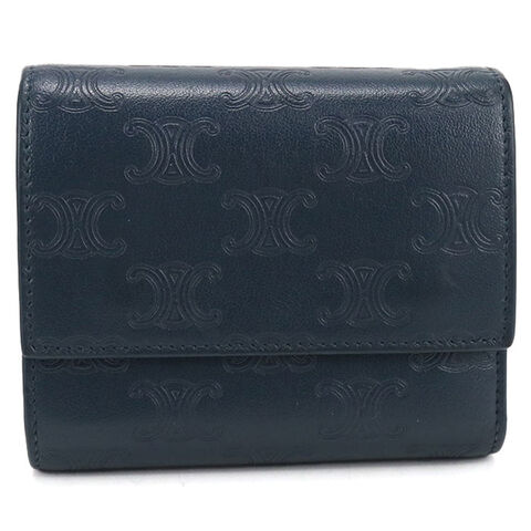 中古 セリーヌ 三つ折り財布 三折財布 レディース ブランド CELINE トリオンフ スモールフラップウォレット ネイビー 財布