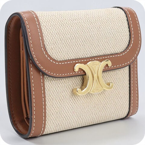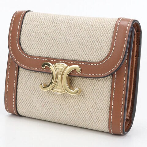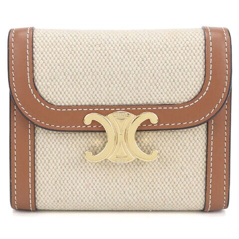 中古 セリーヌ 三つ折り財布 三折財布 レディース ブランド CELINE トリオンフ スモールフラップウォレット ベージュ 財布