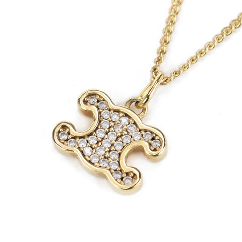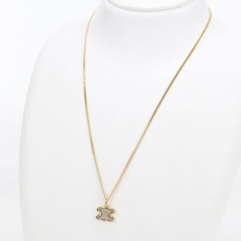 中古 セリーヌ ネックレス レディース ブランド CELINE トリオンフ ラインストーン 460GB6BZI.35OR ゴールド アクセサリー