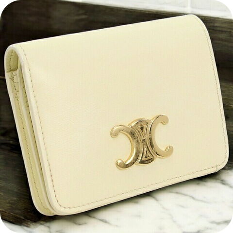 中古 セリーヌ 二折財布小銭入付き レディース ブランド CELINE トリオンフ コンパクトウォレット 10K62 3DPV ホワイト 財布