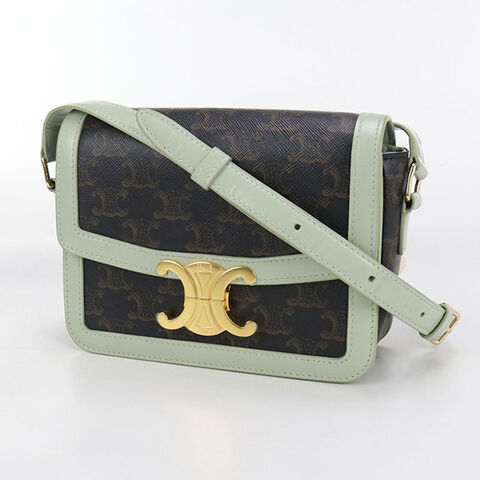 中古 セリーヌ 斜め掛け ショルダーバッグ レディース ブランド CELINE トリオンフキャンバス レザー ブラウン バッグ