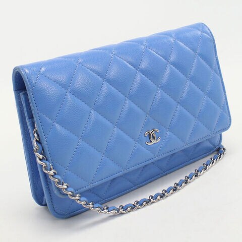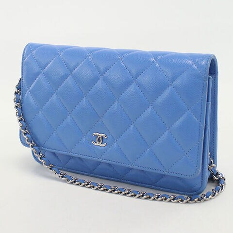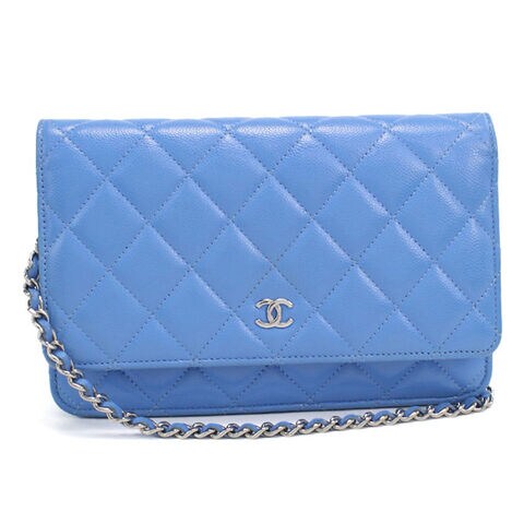 中古 シャネル チェーンウォレット レディース ブランド CHANEL マトラッセ チェーンウォレット ブルー 財布