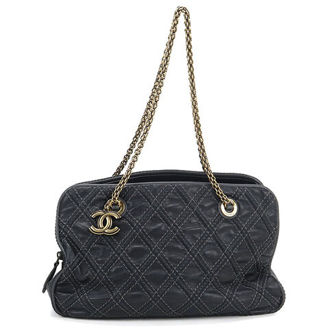 中古 シャネル トートバッグ レディース ブランド CHANEL チェーン レザー グレー バッグ