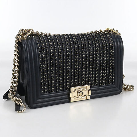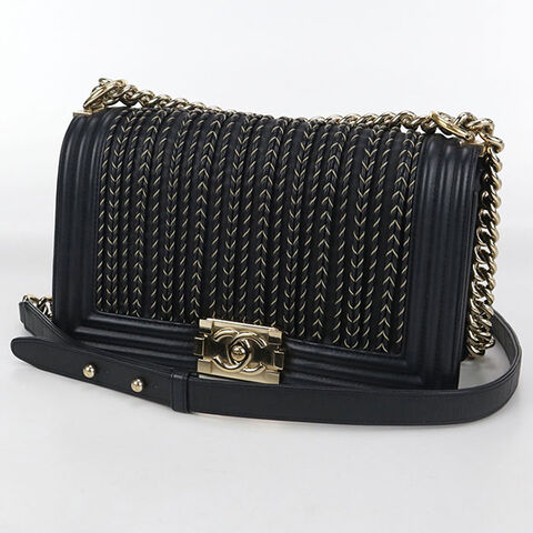 中古 シャネル 斜め掛け ショルダーバッグ レディース ブランド CHANEL ボーイシャネル チェーンショルダーバッグ ブラック バッグ