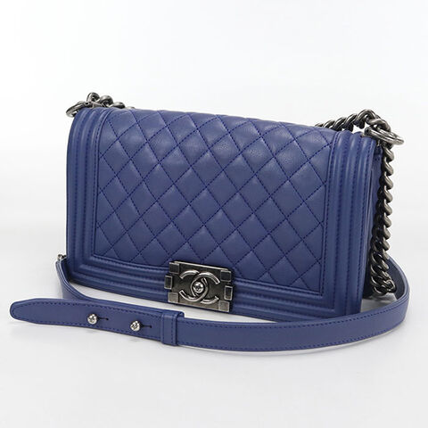 中古 シャネル 斜め掛け ショルダーバッグ レディース ブランド CHANEL ボーイシャネル チェーンショルダーバッグ A67086 ブルー バッグ