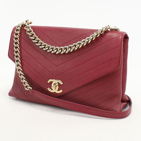 中古 シャネル ショルダーバッグ レディース ブランド CHANEL シェブロン チェーン レザー レッド バッグ