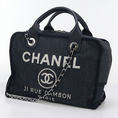 中古 シャネル ボストンバッグ レディース ブランド CHANEL ドーヴィル ボーリングバッグ 2WAY ネイビー バッグ