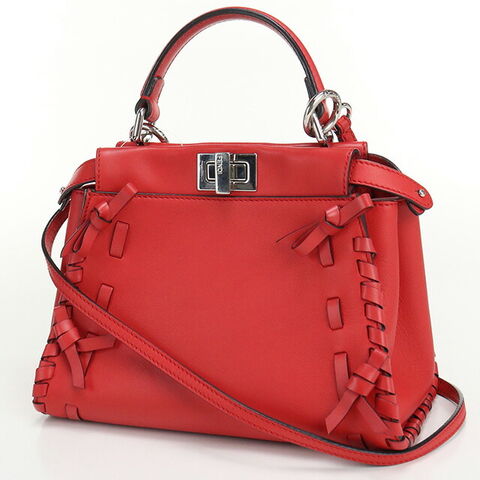 中古 フェンディ ハンドバッグ レディース ブランド FENDI ピーカブー ミニ レザー 8BN244 A312 R0Y77 レッド バッグ