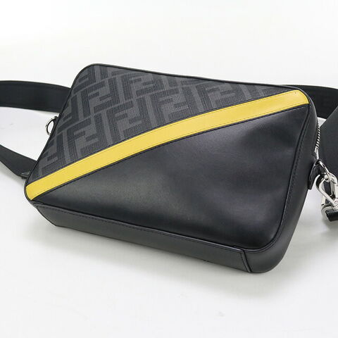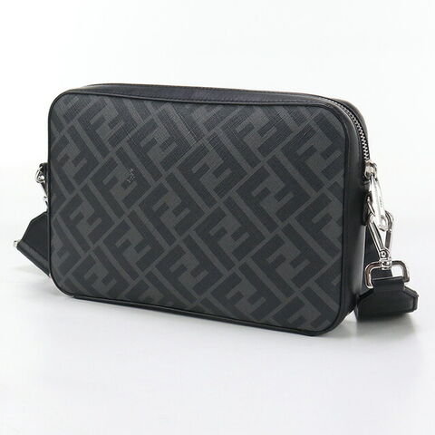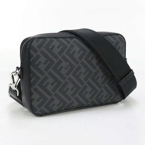 中古 フェンディ ショルダー メンズ ブランド FENDI フェンディ ダイアゴナル カメラケース レザー 7M0286 ブラック バッグ