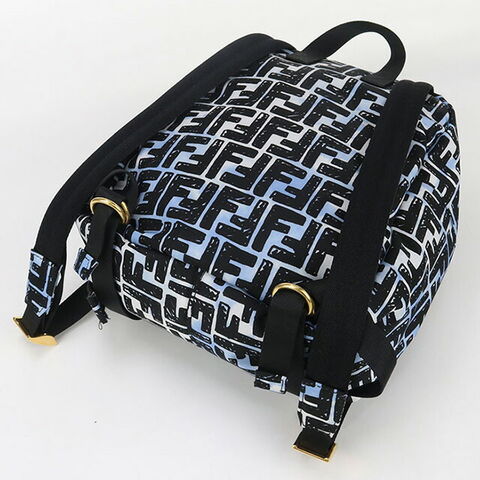 中古 フェンディ リュック レディース ブランド FENDI FF プリント バゲット バックパック 8BZ048 ADBD ブラック バッグ