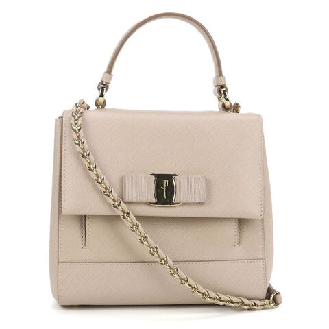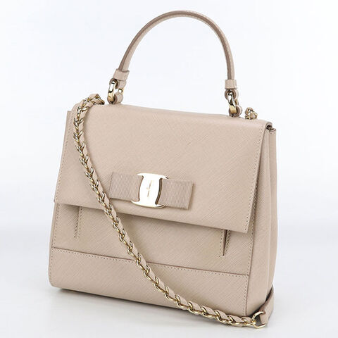 中古 フェラガモ ハンドバッグ レディース ブランド FERRAGAMO ヴァラ リボン 2WAY 21 F570 ベージュ バッグ