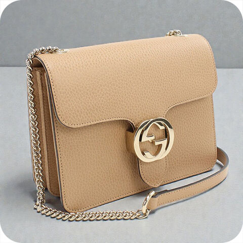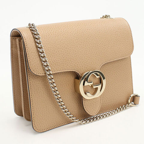 中古 グッチ ショルダーバッグ レディース ブランド GUCCI インターロッキングG チェーン レザー 510304 ベージュ バッグ