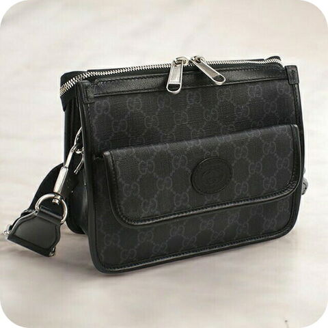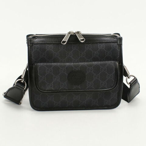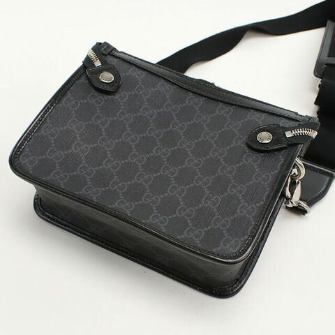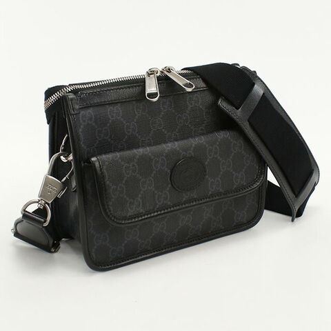 中古 グッチ 斜め掛け ショルダーバッグ メンズ ブランド GUCCI インターロッキングG ショルダーバッグ レザー 674164 ブラック バッグ
