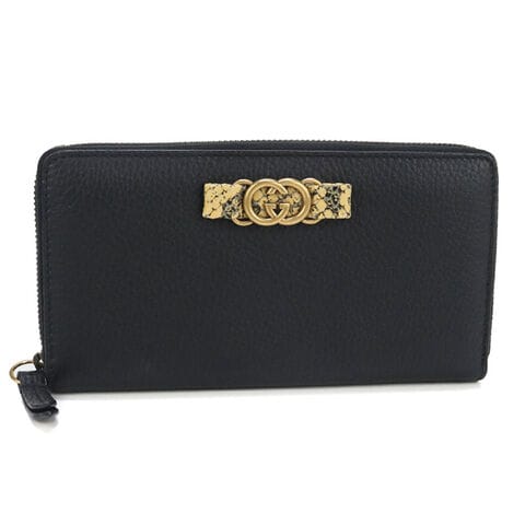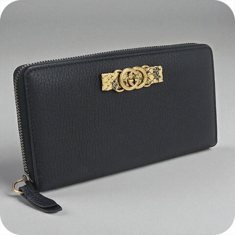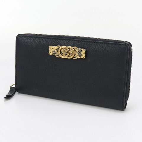 中古 グッチ 長財布ラウンドファスナー レディース ブランド GUCCI インターロッキングG ジップアラウンド長財布 レザー 750458 ブラック