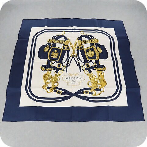 中古 エルメス スカーフ レディース ブランド HERMES カレ90 ネイビー 小物