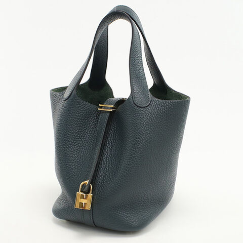 中古 エルメス ハンドバッグ レディース ブランド ピコタンロックPM グリーン バッグ