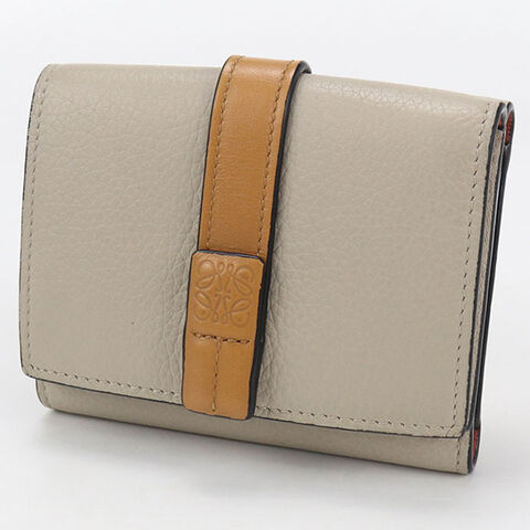 中古 ロエベ 三折財布 レディース ブランド LOEWE アナグラム トライフォールドウォレット ベージュ 財布