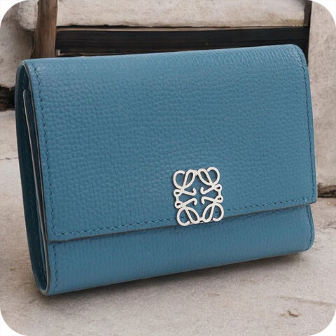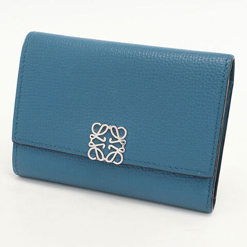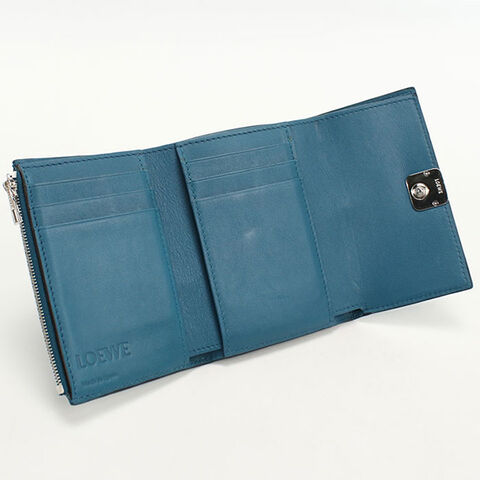 中古 ロエベ 三折財布 レディース ブランド LOEWE アナグラム バーティカル ウォレット スモール C821S33X01 ブルー 財布