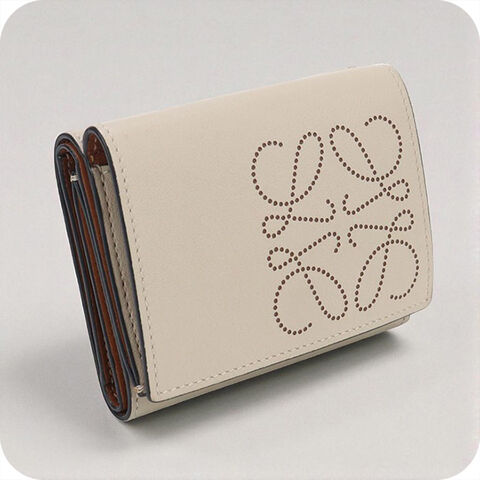 中古 ロエベ 三折財布 レディース ブランド LOEWE アナグラム トライフォールド ウォレット C500TR2X01 ベージュ 財布