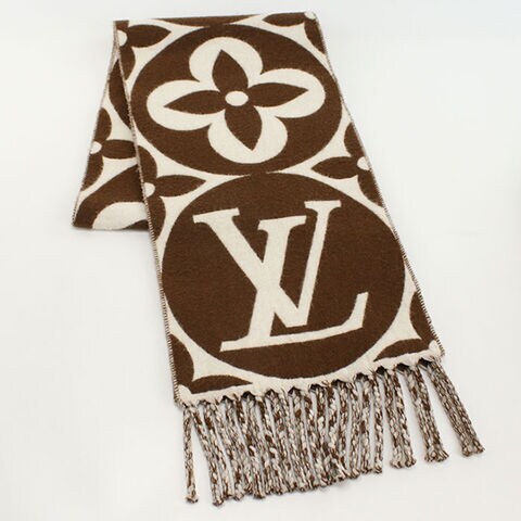 中古 ルイヴィトン マフラー レディース ブランド LOUIS VUITTON フライト・モード マフラー・LVメダリオン M79215 ブラウン 小物