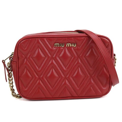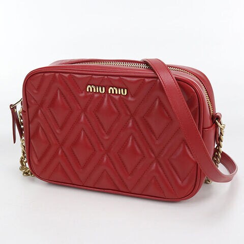 中古 ミュウミュウ 斜め掛け ショルダーバッグ レディース ブランド MIUMIU チェーン レザー レッド バッグ