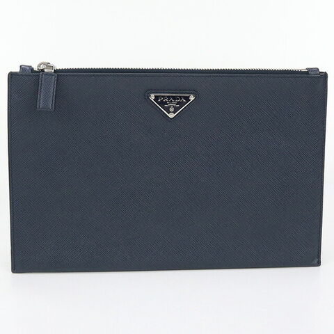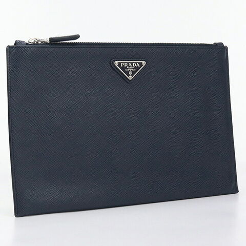 中古 プラダ クラッチバッグ メンズ ブランド PRADA サフィアーノレザー クラッチバッグ レザー ネイビー バッグ