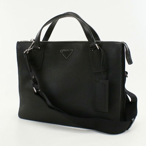 中古 プラダ トートバッグ メンズ ブランド PRADA 2WAYトートバッグ レザー 2VG041 ブラック バッグ