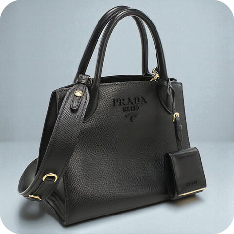 中古 プラダ トートバッグ レディース ブランド PRADA モノクローム 2WAYトートバッグ PR93073 ブラック バッグ
