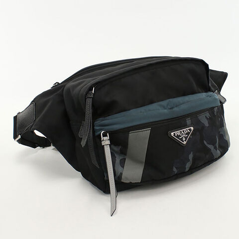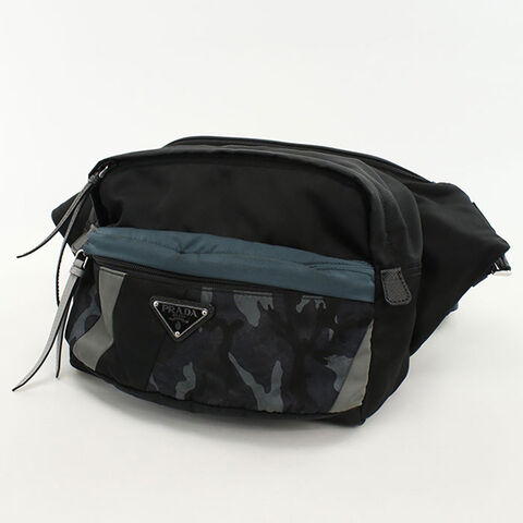 中古 プラダ ボディバッグ メンズ ブランド PRADA ベルトバッグ 2VH038 ブラック バッグ