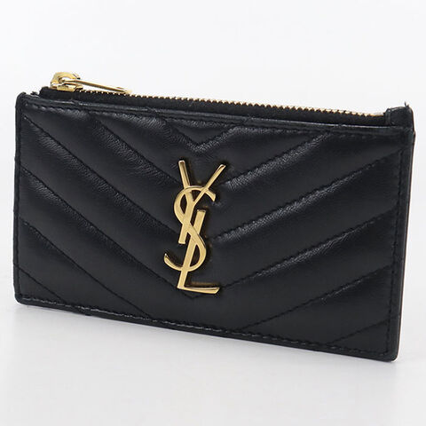 中古 サンローラン コインケース レディース ブランド SAINT LAURENT カサンドラ フラグメント ジップカードケース 607915 ブラック 財布