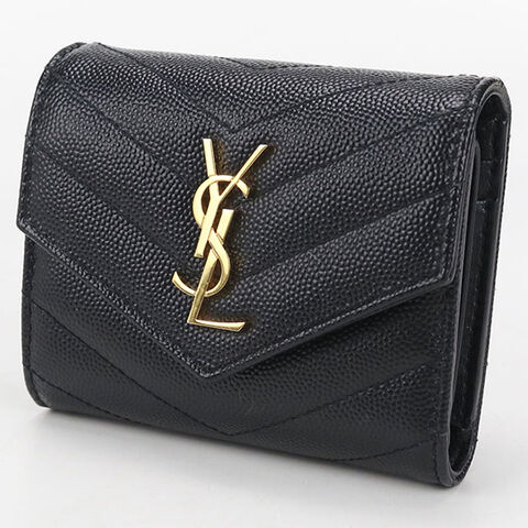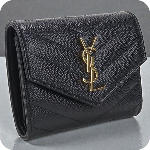 中古 サンローラン 三つ折り財布 レディース ブランド SAINT LAURENT モノグラム マルチフォールドウォレット レザー 692061 ブラック 財布