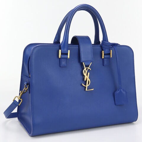 中古 サンローラン ハンドバッグ レディース ブランド SAINT LAURENT モノグラム カバス 2WAYハンドバッグ レザー 357395 ブルー バッグ