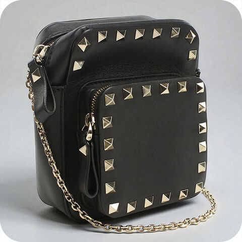 中古 ヴァレンティノ 斜め掛け ショルダーバッグ レディース ブランド VALENTINO ロックスタッズ チェーンショルダーバッグ レザー