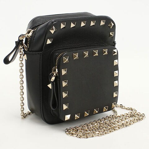 ヴァレンティノ 斜め掛け ショルダーバッグ レディース ブランド ロックスタッズ チェーンショルダーバッグ バッグ レザー VALENTINO ブラック
