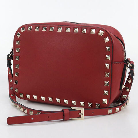 中古 ヴァレンティノ 斜め掛け ショルダーバッグ レディース ブランド VALENTINO ロックスタッズ レザー レッド バッグ