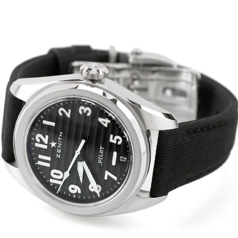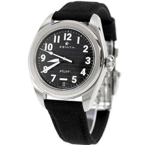 中古 超美品 ゼニス ZENITH パイロット オートマティック エル・プリメロ 替えベルト付属 アナログ 腕時計 ブランド メンズ ブラック