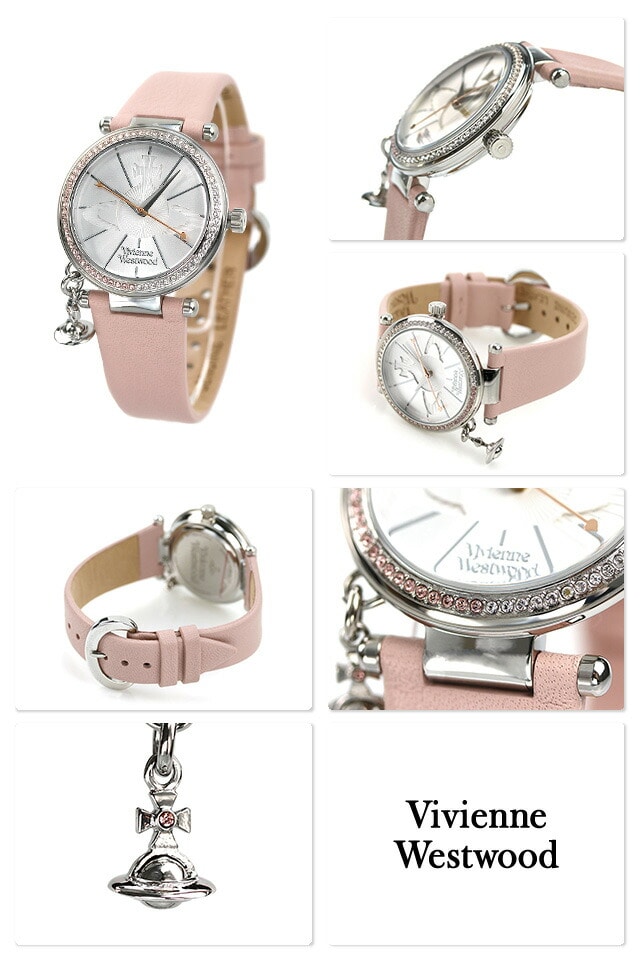 ヴィヴィアン ウエストウッド オーブ パステル 32mm クオーツ レディース 腕時計 VV006SLPK Vivienne Westwood ORB PASTELLE アナログ シルバー×ピンク 革ベルト ◆Vivienne Westwood(ヴィヴィアン・ウエストウッド)はイギリスのファッションブランドです。ブランドの象徴でもある、英国王室の標章のオーブと天体のサテライトがデザインされたロゴは、「伝統」と「未来」を意味し、「伝統を持って未来を創る」というヴィヴィアンの精神を象徴しています。2006年、ヴィヴィアンはファッションデザイナーとしてエリザベス女王よりDAMEの称号(英国への貢献を称える勲章)を授与。その人気と実績が評価され、反逆性とエレガンスを兼ね備えたアヴァンギャルドなデザインで世界中を魅了しています。 オーブ型抜きの文字盤にビジューが煌めくベゼルの組み合わせがポイント。ロゴチャームは小さく揺れて手元に視線を誘います。プレゼントにもおすすめです。