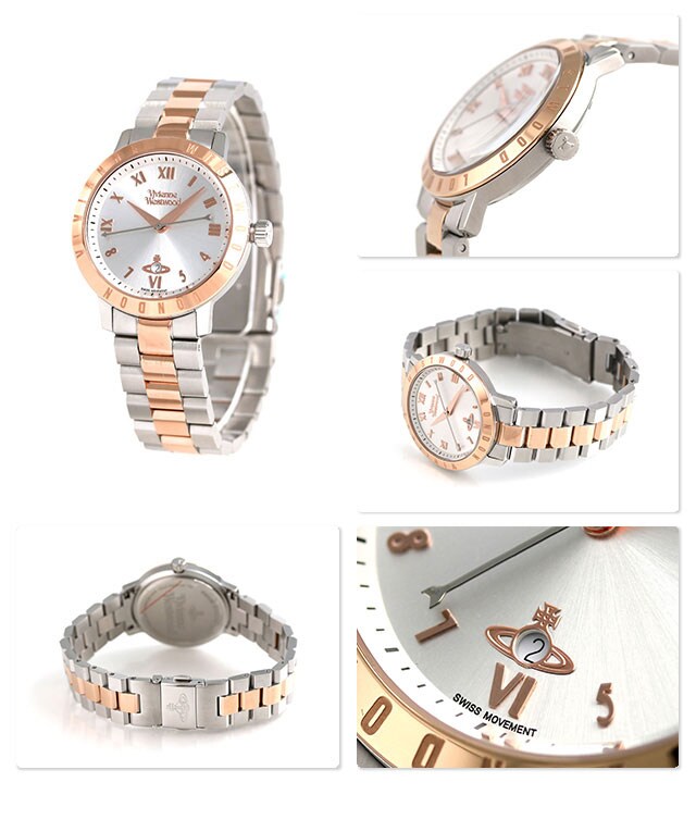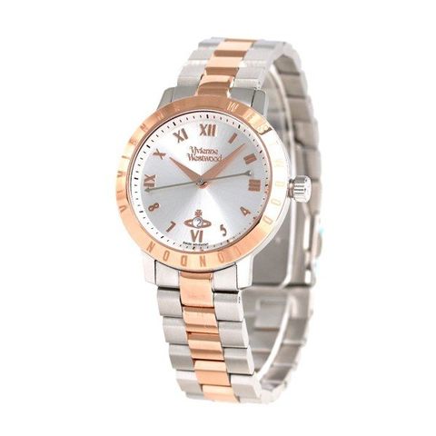 ヴィヴィアン ウエストウッド ブルームズベリー 34mm クオーツ レディース 腕時計 VV152RSSL Vivienne Westwood BLOOMSBURY 34mm アナログ シルバー×ピンクゴールド ◆Vivienne Westwood(ヴィヴィアン・ウエストウッド)はイギリスのファッションデザイナー及び、ファッションブランドです。ブランドのロゴマークには王冠と地球をモチーフにした“オーブ”を掲げています。反逆性とエレガンスさを兼ね備えたアヴァンギャルドなデザインで、若い年代から圧倒的支持を得ています。 ローマ数字とアラビア数字が使われたインデックスが特徴のモデル。ベゼルには「VIVIENNE WESTWOOD LONDON」を刻印。6時位置にあるオーブは、日付になっています。結婚式やパーティーシーンにはもちろん、ビジネスシーンでもお使いいただけます。