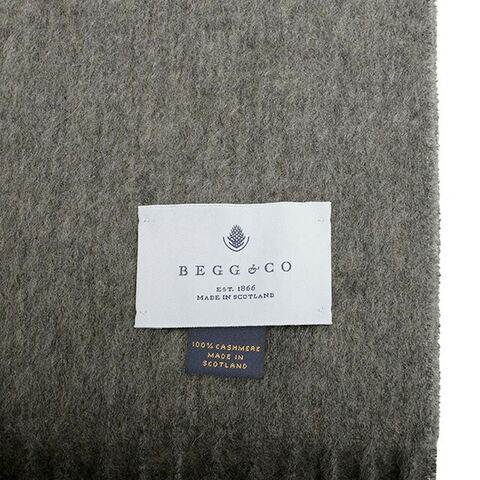 ベグアンドコー BEGG&CO Arran マフラー 60BCARRAN-GREY メンズ レディース グレー マフラー◆1866年にスコットランドの中でも繊維業が盛んなペイズリーという街で創業したBEGG&CO(ベグアンドコー)。ペイズリーで100年ほど実業を続けた後は西海岸の街に工場を移します。最新の機械や高度なテクニックを駆使する一方、伝統的な生産工程も受け継ぎながら、今なおスコットランドの工房で製造を続けています。100年前から使い続けられてきた織り機を使用し、織る、洗う、ブラッシング、カットの全ての工程が人の手によって行われています。スコティッシュカシミヤならではの流れるような手触りは、とげのある植物、ティーズル(アザミの実)で、生地の表面を優しくブラッシングし、さざなみ状の毛並みを作ることで実現しています。