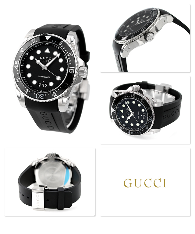 7年保証キャンペーン グッチ ダイヴ スイス製 クオーツ メンズ 腕時計 YA136204B GUCCI DIVE アナログ ブラック 黒 ラバー 1921年、グッチオ・グッチは革製品の会社を起業し、フィレンツェに小さな鞄店を開業。ブランドに対する彼のビジョンは、ロンドンと、彼がサボイ・ホテルで働いていた時に見た英国貴族の洗練された審美眼から培われたものです。財布や革製品以外にもアクセサリーや腕時計も品質の高さや、洗練されたデザインが人気で一気に高級ブランドの地位を確立しました。今では名を知らない人はいないぐらい世界的に有名なブランドです。 コンテンポラリーな魅力が漂うダイバーズウォッチ風デザインのグッチ ダイヴ ウォッチ。スチールケースにブラック ラバー ストラップとマットブラック ダイアルを組み合わせました。蛍光塗料が施された針とインデックス、6時位置には日付表示が備えられ、視認性にも実用性にも優れています。 ギフト プレゼント 父の日 敬老の日 クリスマス 20代 30代 40代 50代 60代