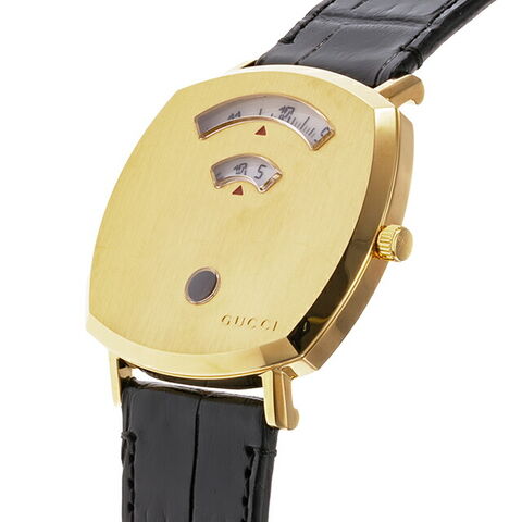 7年保証キャンペーン スイス製 メンズ レディース 腕時計 YA157446 GRIP アナログ ゴールド ブラック 黒 ◆1921年、グッチオ・グッチは革製品の会社を起業し、フィレンツェに小さな鞄店を開業。ブランドに対する彼のビジョンは、ロンドンと、彼がサボイ・ホテルで働いていた時に見た英国貴族の洗練された審美眼から培われたものです。財布や革製品以外にもアクセサリーや腕時計も品質の高さや、洗練されたデザインが人気で一気に高級ブランドの地位を確立しました。今では名を知らない人はいないぐらい世界的に有名なブランドです。 1970年代後半のスケートボーダーにインスピレーションを得たグリップ。ヴィンテージウォッチのような印象ながら、ミニマルで洗練されたスタイルを醸し出します。3つの窓から時間、分、日付を表示します。