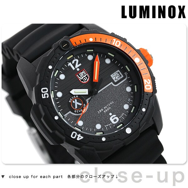 7年保証キャンペーン ルミノックス ベア グリルス サバイバル 3720 シー シリーズ 46mm スイス製 クオーツ メンズ 腕時計 l3729 LUMINOX BEAR GRYLLS SURVIVAL 3720 SEA SERIES アナログ ブラック ◆LUMINOX(ルミノックス)は1989年に創業。高性能なスポーツラインを展開しており、ラテン語で「明るい夜」を意味するブランド名を掲げているように、最先端の発光と視認性の良さを特徴としています。極限の状況下で行われるミッションで必要となる視認性を確保しているルミノックス時計は、特殊軍用時計として絶対的な信頼感を得ています。 Bear Grylls(ベア・グリルズ)はイギリスの冒険家です。Bear Gryllsのロゴとモットーの「Never Give Up」を文字盤と裏ぶたにデザイン。「Never Give Up(決してあきらめない)」は、あらゆる状況から生き残るために必要な精神です。カーボンケースに、ねじ込みのりゅうずやスクリューバックケースと高スペックを装備。また、究極の自己発光システム(LLT)をダイヤルや針に搭載。普段使いからアウトドアなど、様々なシーンにマッチします。