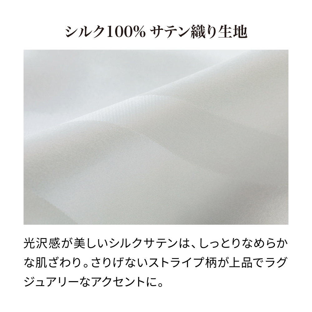 しっとりやさしい肌ざわりと、気品あふれる光沢をまとった美しさが魅力の高級シルクを、日常使いで思う存分味わっていただきたいという想いから生まれたカバーリングシリーズです。さりげないストライプ柄が、寝室のラグジュアリーなアクセントに。毎晩ご自宅で、目も肌も心も満たされる幸せな眠りを。